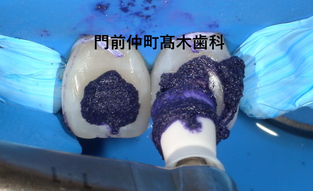 ラバーダム防湿を行い、ICON治療を行っていきます。
